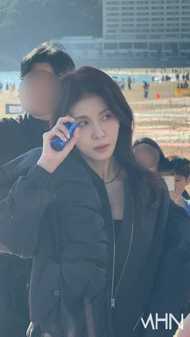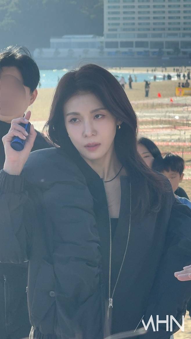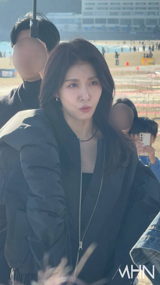 15일 부산 해운대 일대에서는 뷰티 브랜드 '파우치24' 화보 촬영 현장이 펼쳐졌다. 공개된 사진 속 하지원은 블랙 패딩 점퍼에 레깅스와 롱부츠를 매치한 올블랙 스타일링으로 세련된 분위기를 연출했다.