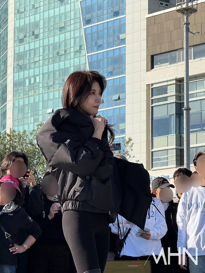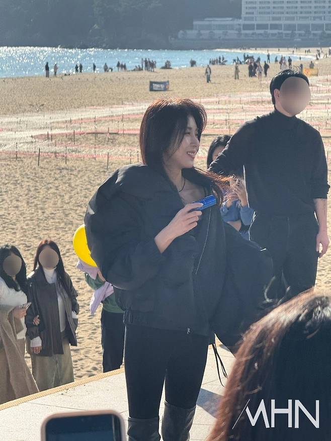 배우 하지원, 해운대 '깜짝 등장'한 美친 미모…'하지원을 찍어라!' 이벤트 현장 포착