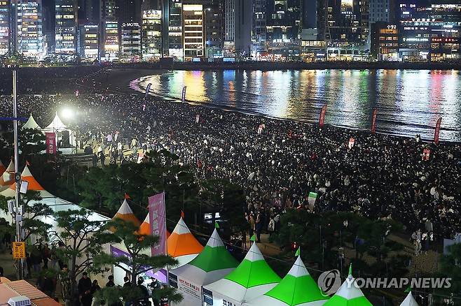 (부산=연합뉴스) 손형주 기자 = 15일 오후 부산 광안리해수욕장 일대가 제20회 부산불꽃축제를 관람하기 위한 시민들로 북적이고 있다. 2025.11.15