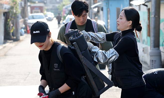 온새미로 자원봉사단이 서울 노원구 상계동 불암산역 인근 마을에서 연탄 나르기 봉사활동을 하고 있다. 서울과 수도권 지역 직장인들로 구성된 자원봉사단체다.
