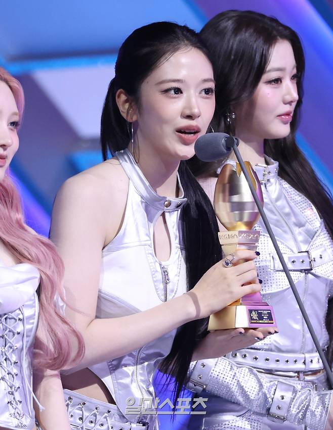 그룹 아이브의 안유진이 '베스트뮤직' 상을 수상하고 소감을 말하고 있다.