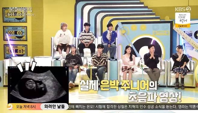 '불후의 명곡'에서 최초로 임신을 발표한 두 사람. 이찬원은 "은가은, 박현호를 줄여서 태명을 '은호'라고 지었다고 한다. '불후의 명곡'을 통해 부부가 됐는데, 이제 부모가 됐다"라고 전했다. 무대 뒤 영상엔 은박 주니어의 실제 초음파 영상이 나왔다고. 김준현은 "언뜻 봤는데 잘생겼다"라고 말하기도. 자두는 "모든 분들이 경이로움을 느끼지 않았을까 싶다"라고 감동했다.