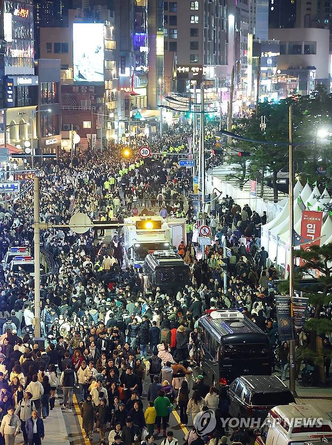 (부산=연합뉴스) 손형주 기자 = 15일 오후 부산 광안리해수욕장 일대에서 열린 제20회 부산불꽃축제가 끝나고 관람객들이 해변로를 빠져나가고 있다. 2025.11.15