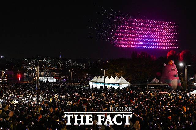 서울시는 지난 9월 7일 ‘케이팝 데몬 헌터스’를 주제로 뚝섬한강공원에서 진행한 ‘한강 드론 라이트쇼’ 공연 이후 관람객들의 높은 관심에 힘입어 마지막 특별공연을 마련했다.
