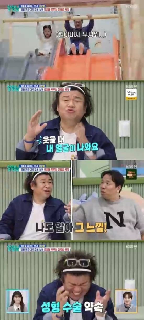 오정태는 "저도 걱정했다. 애들이 공부를 잘하는데 웃으면 내 얼굴이 나온다"면서 1년 전쯤 첫째 딸이 남자들이 자신에게 고백을 안 한다고 고민을 털어놓은 적이 있다고 했다.