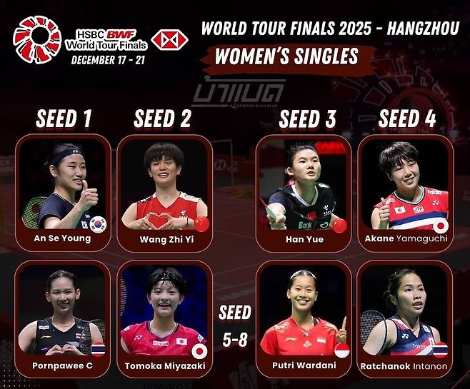 태국의 '배드민턴 블라블라' 등 동남아 매체들은 지난 15일(한국시간) 2025 세계배드민턴연맹(BWF) 월드투어 파이널 여자단식에 나설 8명이 결정됐다고 일제히 보도했다.