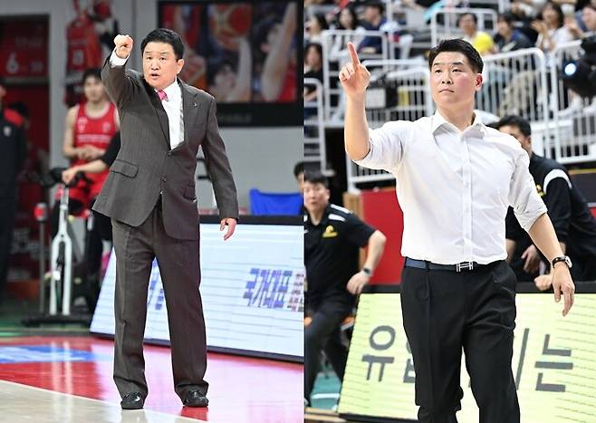 사진 설명 = 왼쪽부터 유도훈 정관장 감독-조상현 LG 감독