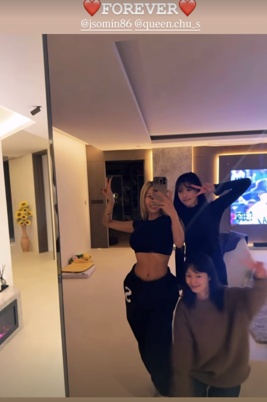 15일 제시는 개인 계정을 통해 이미주, 전소민과 함께 찍은 사진을 게재한 뒤 "♥FOREVER♥"라는 멘트를 덧붙였다.
