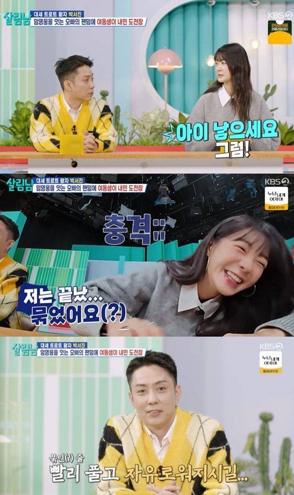 이를 들은 MC 이요원은 최근 결혼한 은지원에게 "그럼 빨리 아이를 낳아라"고 말했다.