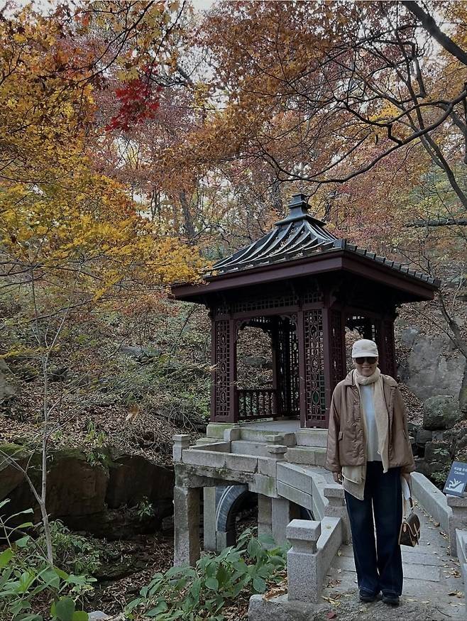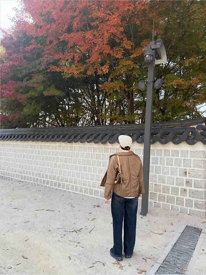 단풍과 한옥 담장이 어우러진 풍경 속에서 박미선의 자연스러운 미소와 담백한 스타일링은 세련된 중년의 가을 일상을 그대로 보여줬다.