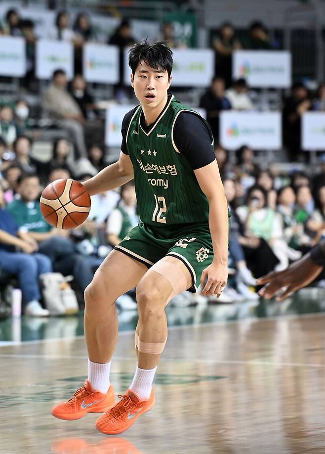 정효근은 비시즌에 입은 어깨 부상으로 팀에 합류하지 못했다. 그리고 이날 2쿼터 종료 5분 46초를 남기고, 2025~2026시즌 첫 코트를 밟았다. 원주 팬들도 뜨거운 함성으로 정효근의 복귀를 환영했다.
