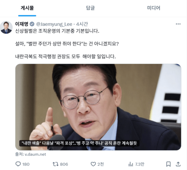 하지만 이재명 대통령은 16일 엑스(X·옛 트위터)를 통해 “신상필벌은 조직 운영의 기본 중 기본”이라며 “내란극복도, 적극행정 권장도 모두 해야 할 일”이라고 직접 추진 의지를 밝히고 나섰다.