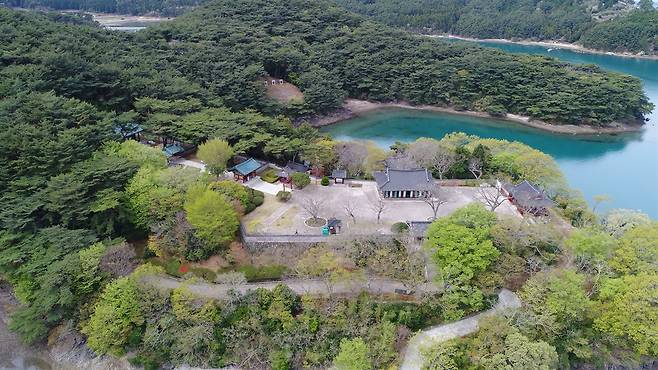 | ▲ 한산도 제승당 임시 관제일 때의 '삼도수군통제영'의 본영이었던 한산도 두억포. 운주당 자리에 이순신을 기리는 사당인 '제승당'이 앉아 있다. 이순신의 '한산도가'가 탄생한 곳이다. |