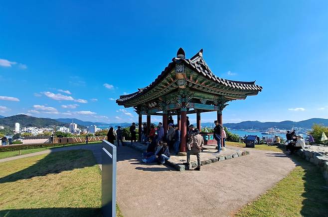 | ▲ 서포루 서피랑 정상에서 지휘소를 겸하였던 서포루. 멀리 한산대첩 바다가 또렷하게 보인다. |