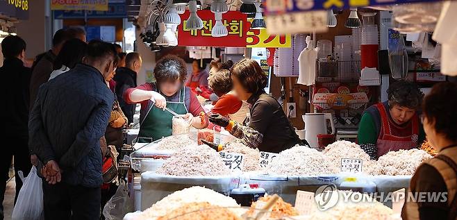 (인천=연합뉴스) 임순석 기자 = 본격적인 김장철을 맞아 16일 인천 남동구 소래포구 전통어시장을 찾은 시민들이 김장용 젓갈을 구입하고 있다. 2025.11.16