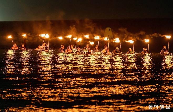 안정된 야경의 색조 속에서 수평으로 이어진 횃불의 불빛이 강한 에너지를 더하며, 빛에 의해 묘사되는 특징들을 잘 보여준다. 바다와 함께하는 해녀들의 모습을 재현해 제주의 정체성과 삶의 의미를 함께 전하고 있다.