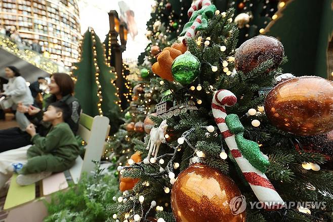 (서울=연합뉴스) 진연수 기자 = 16일 서울 강남구 코엑스몰 별마당 도서관에 크리스마스 트리가 설치되어 있다. 2025.11.16