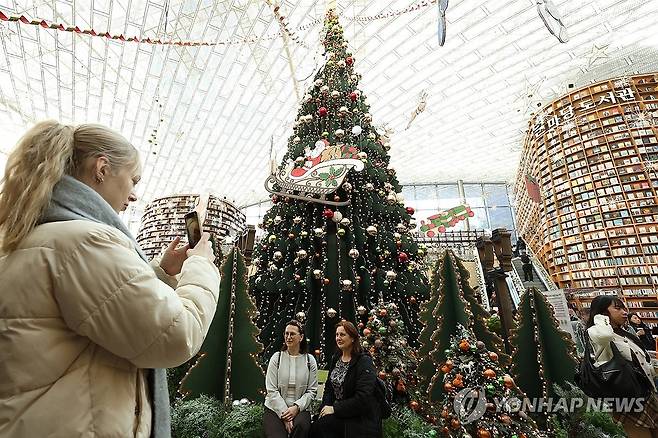 (서울=연합뉴스) 진연수 기자 = 16일 서울 강남구 코엑스몰 별마당 도서관에 크리스마스 트리가 설치되어 있다. 2025.11.16