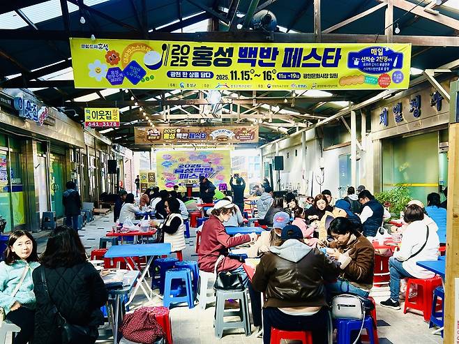 주말인 16일 충남 홍성 광천문화시장에서는 개장 100주년을 맞아 로컬푸드 축제인 '홍성 백반 페스타'가 지난 15일부터 열렸다.