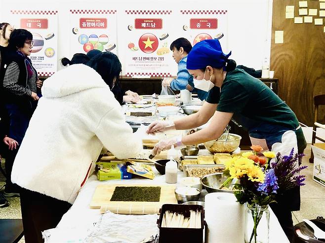 | ▲ 김밥 소재가 되는 광천김을 활용해 베트남, 태국, 중국, 중앙아시아의 글로벌 4개국의 식재료로 만드는 글로벌 김밥 팝업스토어는 방문객들에게 큰 인기를 끌었다. |