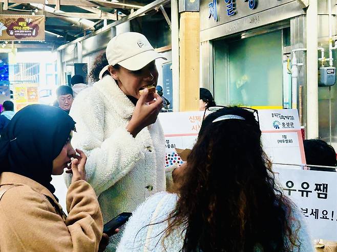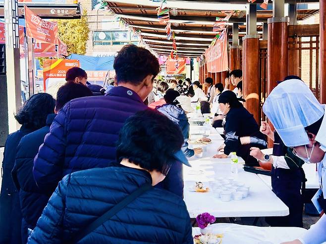 | ▲ 이날 광천문화시장 문화광장에서는 홍성 특산물을 활용한 ‘2025년 미감 도시 홍성 요리 경연대회’도 개최됐다. 방문객들이 출품작을 시식하고 있다. |