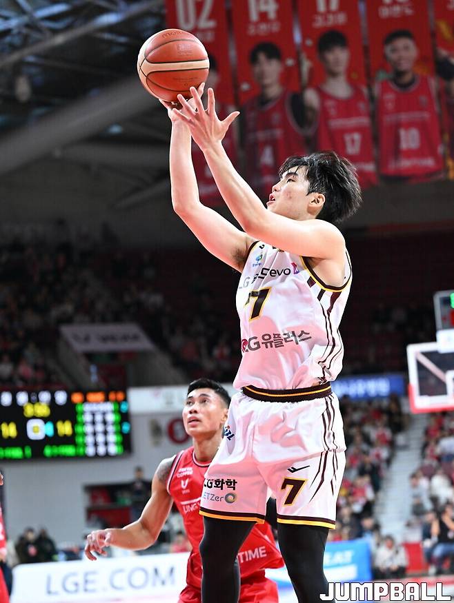 LG는 한번 물은 정관장의 목덜미를 놓치지 않았다. 김경원에게 3점슛을 허용했지만, 불붙은 LG의 분위기는 가라앉지 않았다.