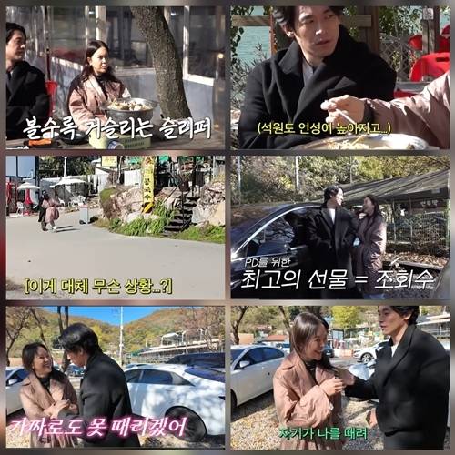 식당 문 밖에서 마주친 부부는 갑자기 서로를 보며 박장대소. 이때 제작진이 상황을 눈치챘다.