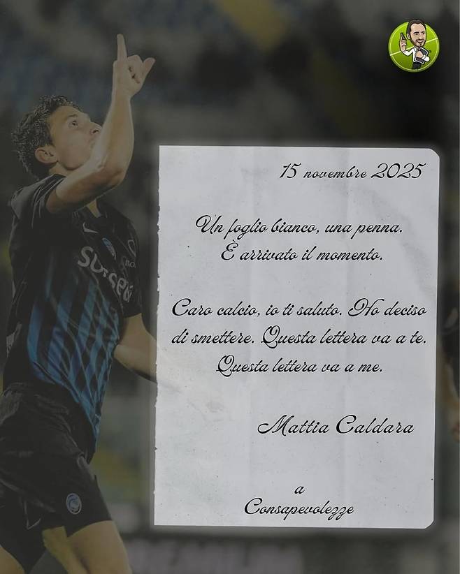 칼다라는 15일(한국 시각) 이탈리아 매체 ‘디 마르지오’를 통해서 “사랑하는 축구에 작별 인사를 전한다. 이제 그만하기로 했다”라고 은퇴를 발표했다.