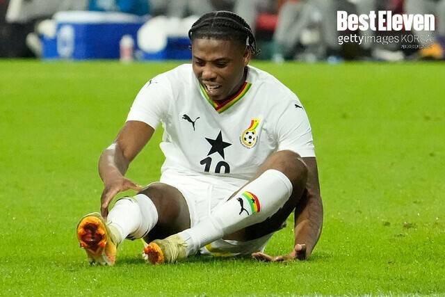 가나 MF 프랜시스 발목 부러뜨린 日 타나카, 벤치 찾아가 고개 숙였다 "미안하고, 너무 안타깝다"