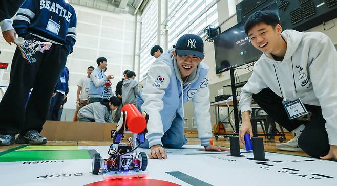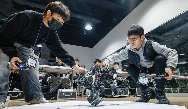 16일 서울 도봉구 시립창동청소년센터에서 열린 K-청소년로봇대회에서 참가 학생들이 각종 경기에 참여하고 있다.