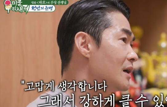 무속인은 배정남을 보며 “한 많은 남자다. 가슴 깊숙이 대못이 박힌 사주”라며 어린 시절 이야기를 꺼냈다. 배정남은 실제로 할머니 손에서 자랐던 바. 이에 무속인은 “부모가 있어도 이별수가 세고, 한쪽 부모를 늘 그리워하는 사주다. 내 부모를 남에게 주고, 남의 부모를 섬기는 삶을 타고났다”고 설명했다.