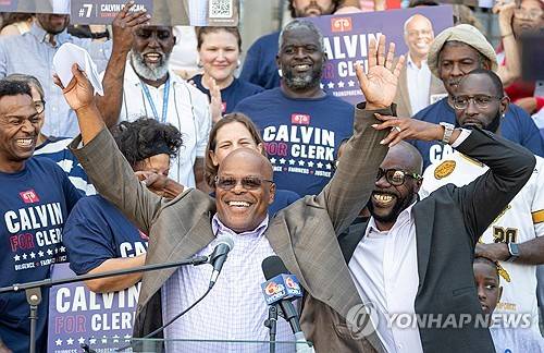 FILE - Calvin Duncan, center, stands with supporters on the steps of Orleans Parish Criminal Court to speak about his ambitions to be the next Clerk of Court, Oct. 2, 2025. (Chris Granger/The Times-Picayune/The New Orleans Advocate via AP, File) FILE PHOTO, MANDATORY CREDIT; LOUISIANA BUSINESS INC. OUT (INCLUDING GREATER BATON ROUGE BUSINESS REPORT, 225, 10/12, INREGISTER, LBI CUSTOM); NO LICENSING EXCEPT BY AP COOPERATIVE MEMBERS