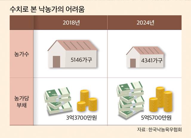 한계점에 다다른 낙농가 상태는 수치로도 나타난다. 한국낙농육우협회에 따르면 2018년 5146곳이던 농가수는 꾸준히 줄어 지난해 4341곳까지 감소했다. 같은 기간 농가당 부채는 3억3700만원에서 5억5700만원으로 올라갔다.