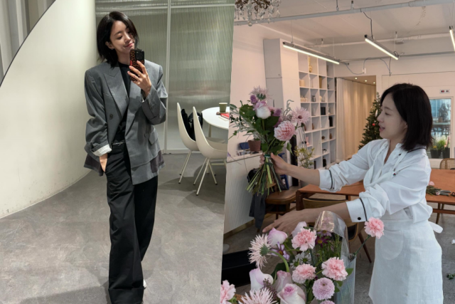첫 번째 사진에서 함은정은 오버핏 재킷에 와이드 팬츠를 매치해 세련된 오피스룩을 완성했다. 거울 앞에서 미소를 띠고 셀카를 찍는 모습에서는 여유와 성숙함이 물씬 풍겼다. 이어 공개된 또 다른 사진에서는 화사한 꽃들로 가득한 공간에서 꽃다발을 정리하는 모습이 포착됐다. 화이트 셔츠 차림의 함은정은 따뜻한 분위기 속에서 자연스럽게 웃음을 머금어, 다가올 결혼을 앞둔 설렘이 고스란히 전해졌다.