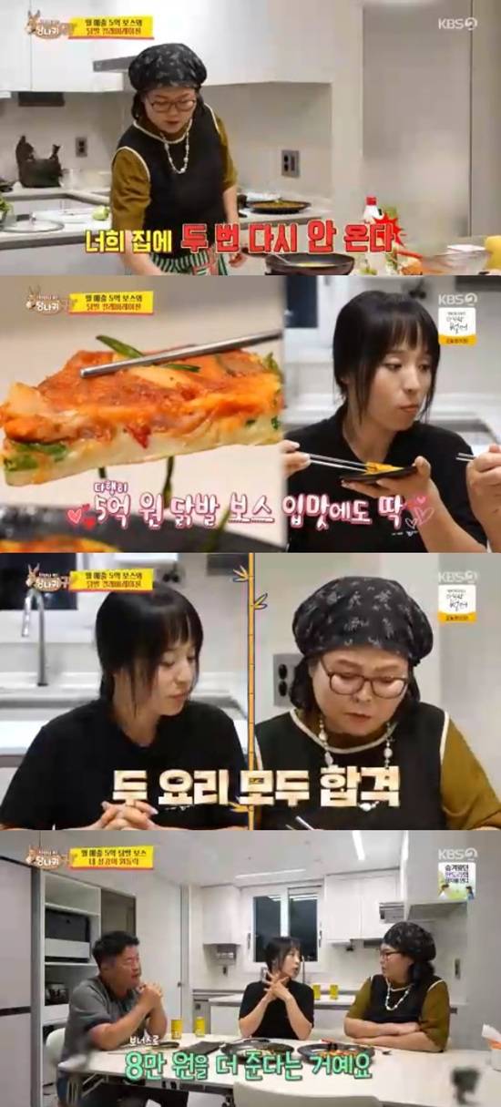 김량진은 이순실의 아이디어로 나온 두 메뉴를 맛보고 모두 합격이라며 컬래버에 긍정적인 모습을 보였다.