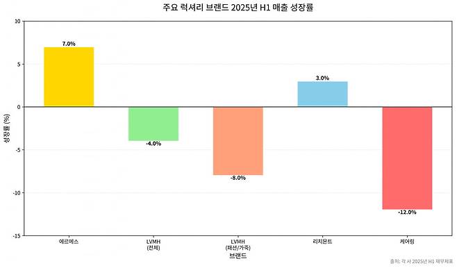 리치먼드 그룹도 비슷하다. 2025 회계연도 매출이 214억 유로로 성장세를 유지했다. 이 중 카르티에 등을 포함한 ‘주얼리 메종’ 부문은 약 32% 영업이익률을 기록했다. 아니타 발찬다니 매켄지 럭셔리 부문 파트너는 "올해 럭셔리 시장의 둔화는 주로 '열망하는 소비자'에게서 나타나고 있다"며 "반면 초고액 자산가(VVIP)들은 에르메스 같은 최상위 브랜드에 대한 지출을 굳건히 유지하고 있다"고 분석했다.