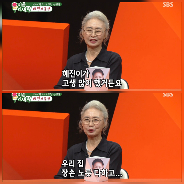 스튜디오에 있던 한혜진의 어머니도 결국 눈물을 참지 못했다. 서장훈이 이유를 묻자, 한혜진의 어머니는 떨리는 목소리로 말했다.