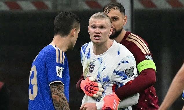 스코어만으로도 괴로운 경기였지만, 돈나룸마는 예상치 못한 장면으로 더욱 난감한 순간을 맞았다. 대표팀 동료 수비수 잔루카 만치니와 소속팀 동료 홀란이 거칠게 언쟁을 벌이며 몸싸움 직전까지 갔기 때문이다.