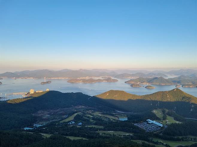 | ▲ 미륵산에서 내려다 본 한산도 앞바다 |