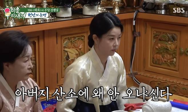 그러자 무속인은 "아버지가 산소에 왜 안 오냐고 하신다"며 조심스럽게 말을 이었다.