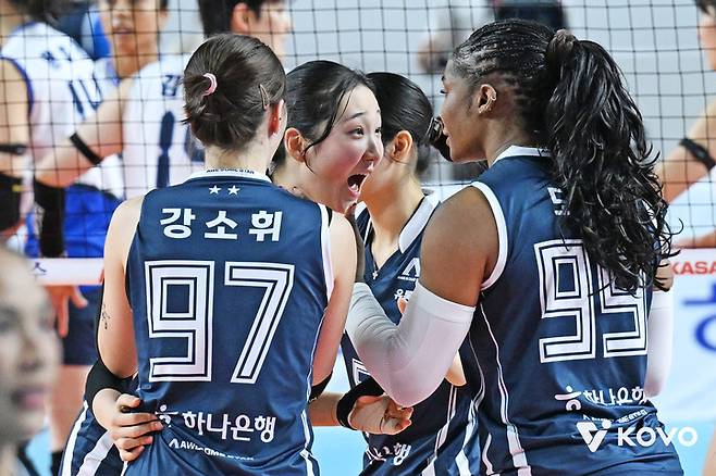 가장 강력한 무기는 모마-타나차-강소휘로 이어지는 삼각편대다. 김종민 감독은 연결에서 아쉬움을 표했지만, 공격수들이 '강력한 한 방'으로 팀의 약점을 지우고 있다. '원 팀'의 힘으로 선두 질주 중이다.