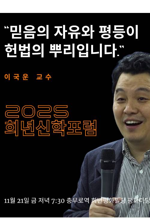 불법비상계엄 사태를 통해 보다 근본적인 성찰의 자리도 마련된다. 희년함께는 지난 12.3 불법비상계엄이 촉발한 헌법의 주제를 오는 21일 충무로에 있는 희년평화빌딩 평화마당에서 살펴본다. 비상계엄, 극우 등 반헌법적 행태의 담론을 넘어 헌법 자체에 대한 기독교적 철학을 논의한다.