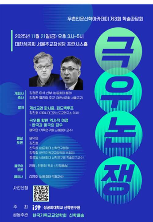 성공회대학교 신학연구원은 오는 21일 성공회서울주교좌성당 프란시스홀에서 '극우 논쟁'을 주제로 우촌인문신학아카데미 좌담회를 개최한다.