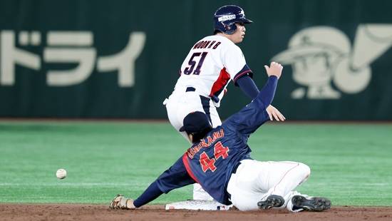 지난 1차전 3-3으로 추격을 허용한 한국은 5회초 선두타자 문현빈의 투수 앞 강습 타구로 반격에 나섰다. 문현빈의 타구는 마운드 부근을 강하게 먼저 맞은 뒤 투수 발에 맞아 굴절됐고, 높게 떠 파울라인 바깥에 있던 1루수 글러브로 쏙 들어갔다. 문현빈은 여유롭게 1루 베이스를 밟았다.