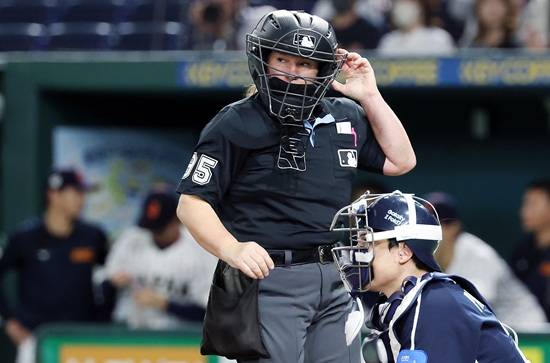 의도치 않게 한일전의 '신스틸러'가 된 파월 주심은 MLB 150년 역사 최초의 여성 심판으로 큰 관심을 받았다.