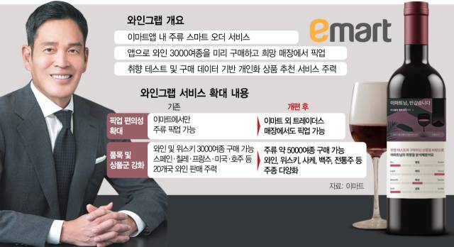 정용진 신세계그룹 회장이 이끄는 이마트가 주류 스마트오더 서비스인 ‘와인그랩’을 대대적으로 개편한다. 연내 이마트뿐 아니라 트레이더스까지 픽업 채널을 확대하고 주종 역시 와인·위스키 중심 상품군에서 전통주와 대중주로 대폭 넓힌다. 이마트는 이번 개편을 통해 ‘주류 온라인 주문–오프라인 픽업’ 시장 경쟁력을 강화하고 MZ세대 중심의 프리미엄·희귀 주류 수요를 본격 흡수해 오프라인 매장의 집객 효과를 늘리겠다는 전략이다.