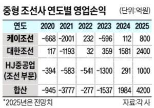 2010년대 초반 이후 처음으로 중형 조선 3사가 동반 흑자를 기록하는 것은 물론 내년엔 모두 1000억원 이상의 영업이익을 낼 전망이다.