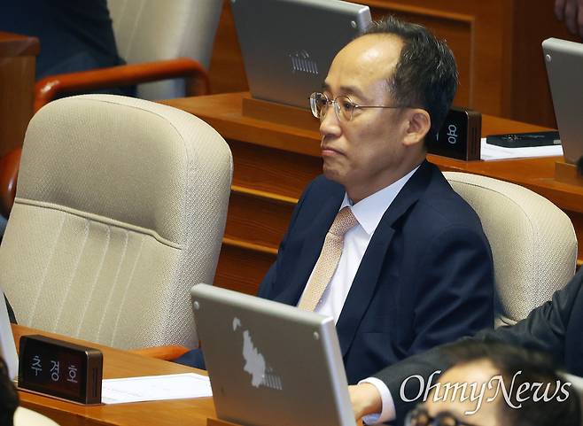 | ▲ 12.3 불법계엄 당시 국회의 계엄 해제 표결을 방해한 혐의를 받는 추경호 국민의힘 의원이 13일 오후 서울 여의도 국회에서 열린 본회의에 참석하고 있다. |