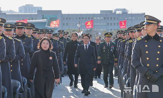 [서울=뉴시스] 청사사진기자단 = 김민석 국무총리가 17일 서울 노원구 육군사관학교에서 열린 제86회 순국선열의 날 기념식에 참석하고 있다. 2025.11.17. photo@newsis.com