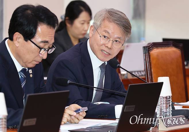 | ▲ 민형배 더불어민주당 의원이 17일 서울 여의도 국회에서 열린 문화체육관광위원회 전체회의에서 현안 질의를 하고 있다. |
